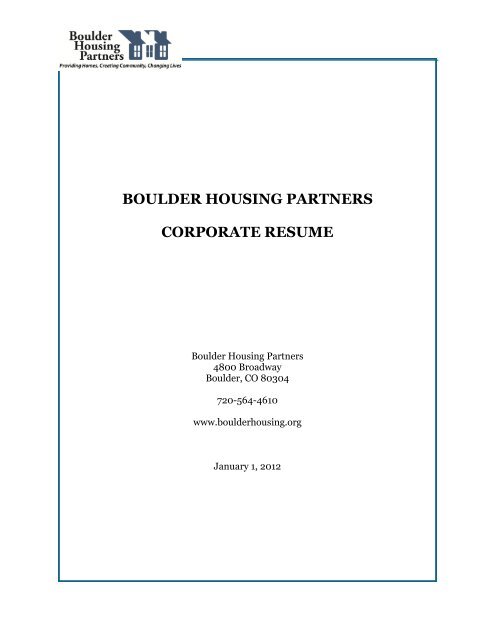 Boulder Housing Partners Corporate Resume